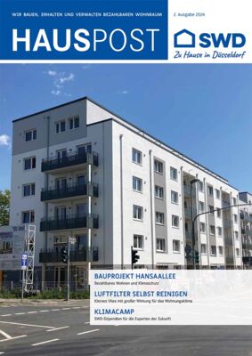 In der aktuellen Hauspost erhalten Sie Informationen zu unterschiedlichen Bauprojekten, etwa zur Grundsteinlegung an der Chemnitzer Straße. Zudem erfahren Sie, wie Sie einen Luftfilter reinigen können, und auf welche Weise die SWD das Klimacamp der EBZ unterstützt. Auch ein Artikel über den Kiefernstraßen-Chronist Bernd Schaller gehört neben anderen zu den Themen der 2. Ausgabe der Hauspost in diesem Jahr.