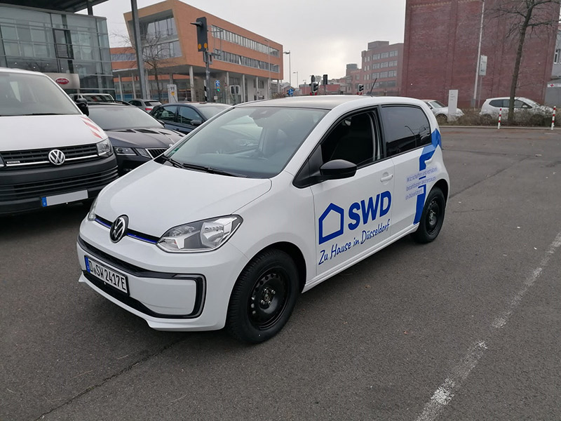 Die Teams der SWD sind tagtäglich für die Mieterinnen und Mieter auf den Straßen Düsseldorfs unterwegs. Ab sofort geschieht das jetzt klimafreundlich. Die SWD hat die gesamte Team-Flotte auf E-Autos umgerüstet. Die neuen Volkswagen e-Up Fahrzeuge eignen sich mit einer Reichweite von 180 bis 260 km perfekt für die Kurzstrecken im Düsseldorfer Stadtgebiet.